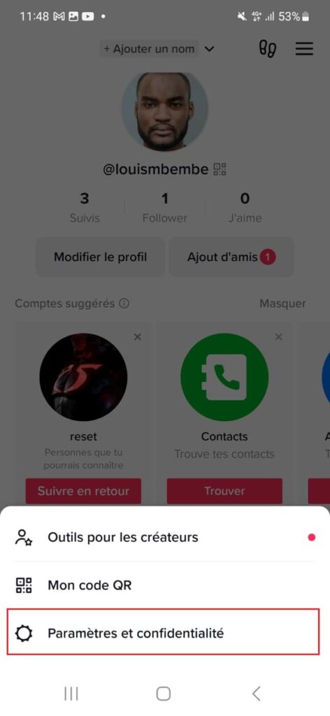- Cliquez sur “Paramètres et confidentialité” dans le menu qui apparaît