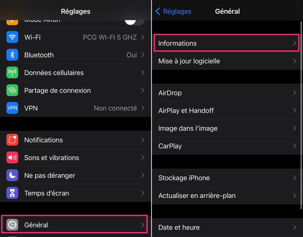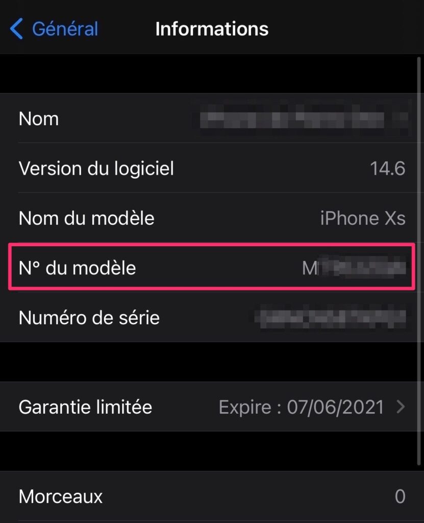 Il suffit de vérifier la première lettre du numéro de modèle. Pour cela, se rendre dans dans Réglages > Général > Informations, et vérifiez l’intitulé : “Modèle”.